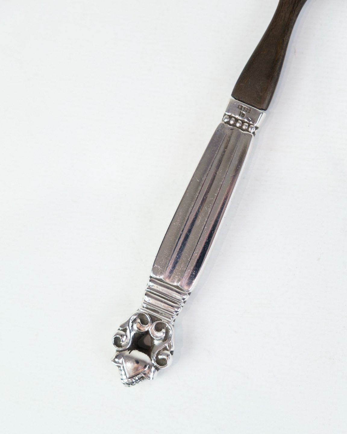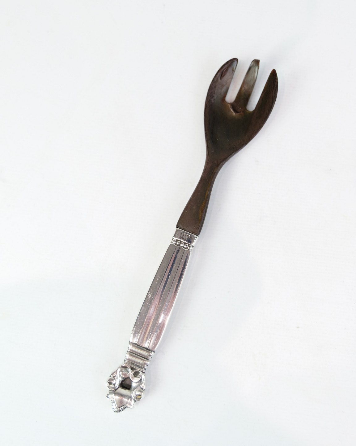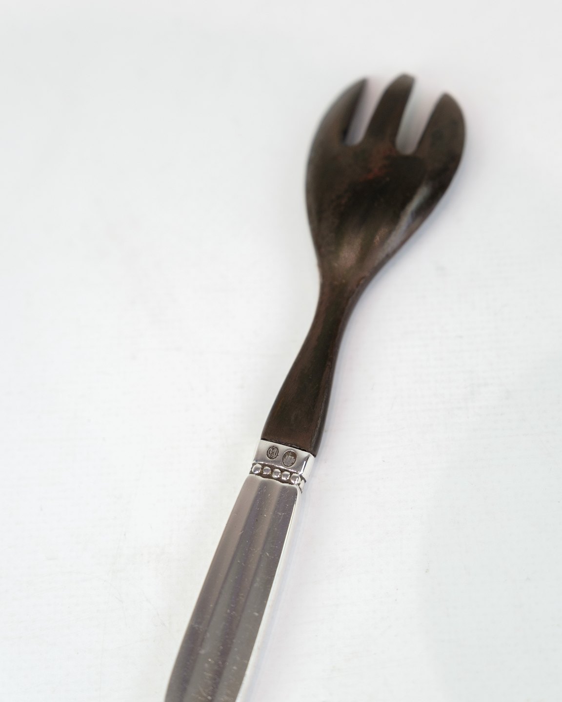Georg Jensen Salad set in King pattern. Sterling silver and horn. Design by Johan Rohde. Length 18cm.