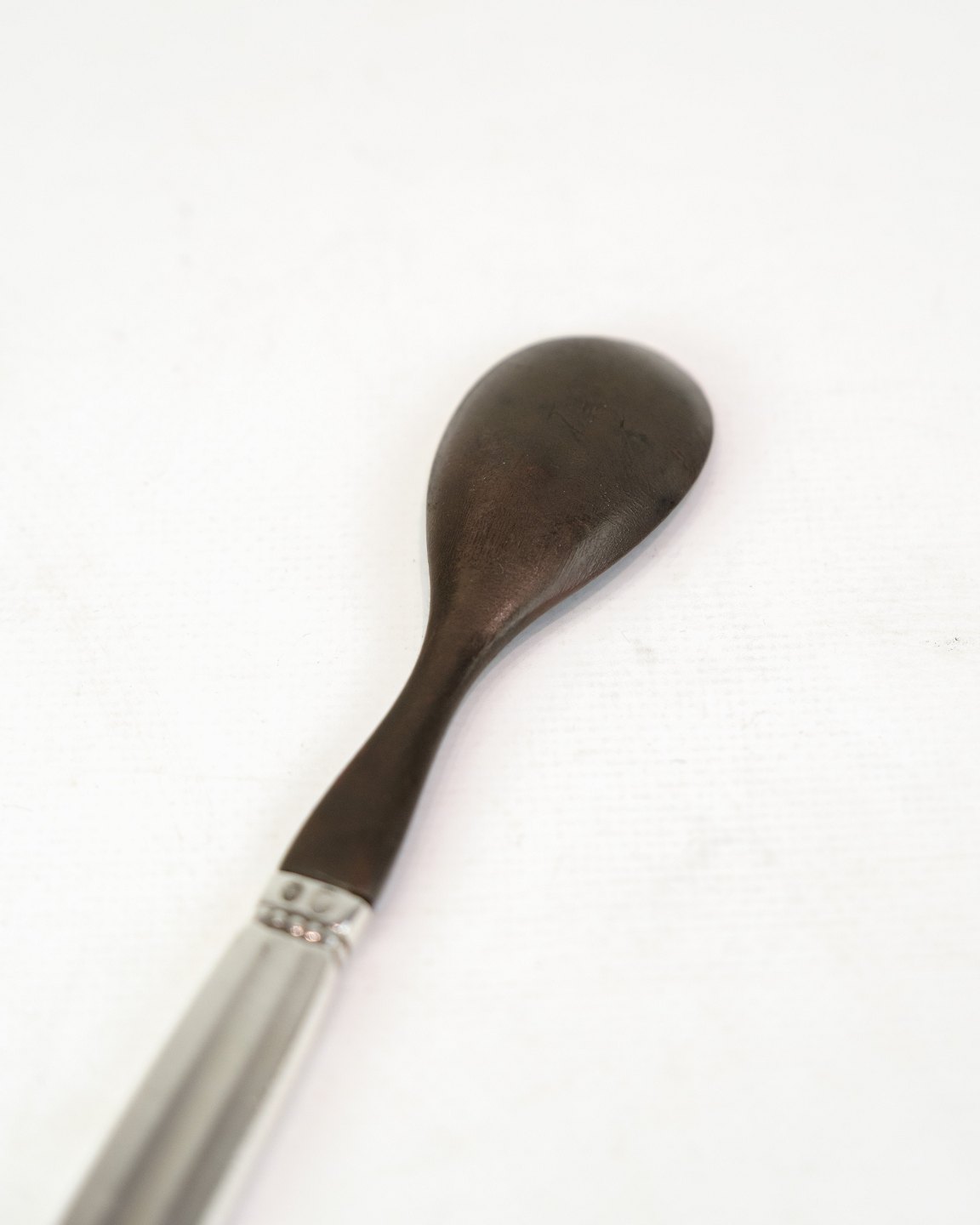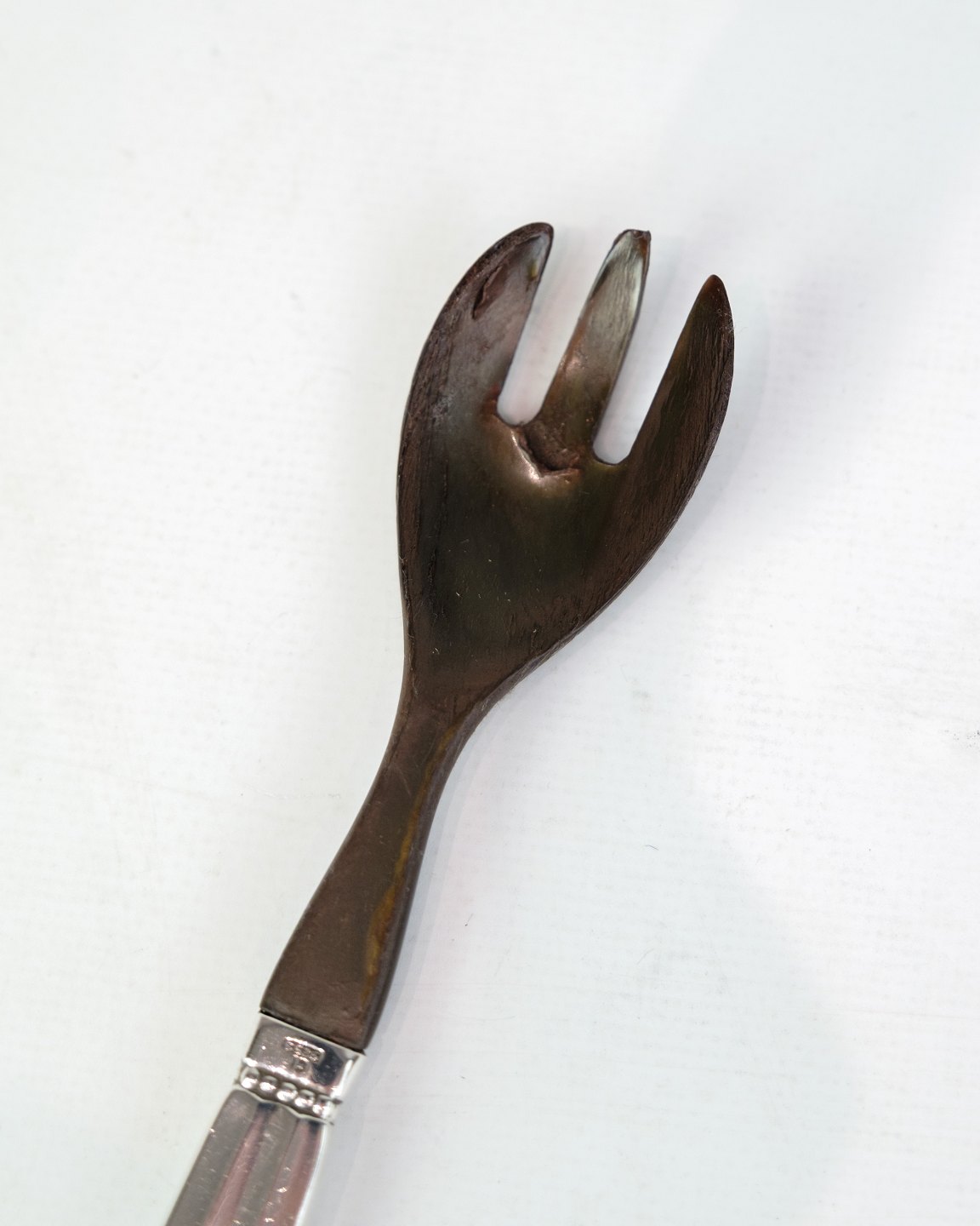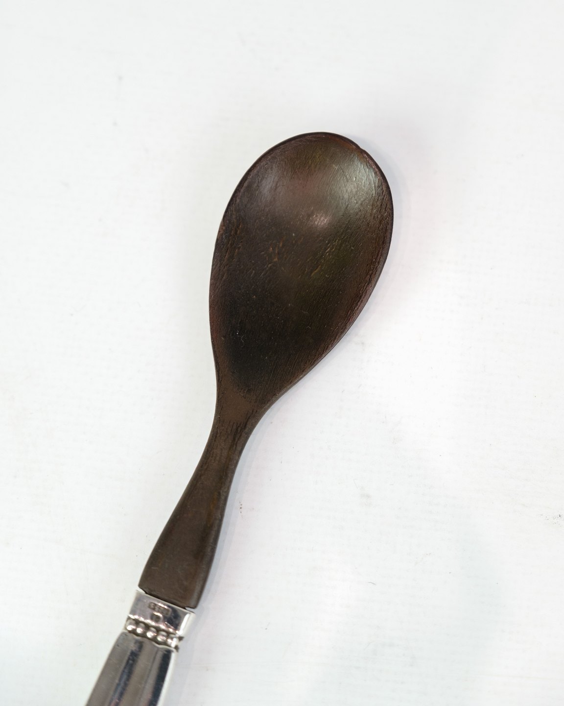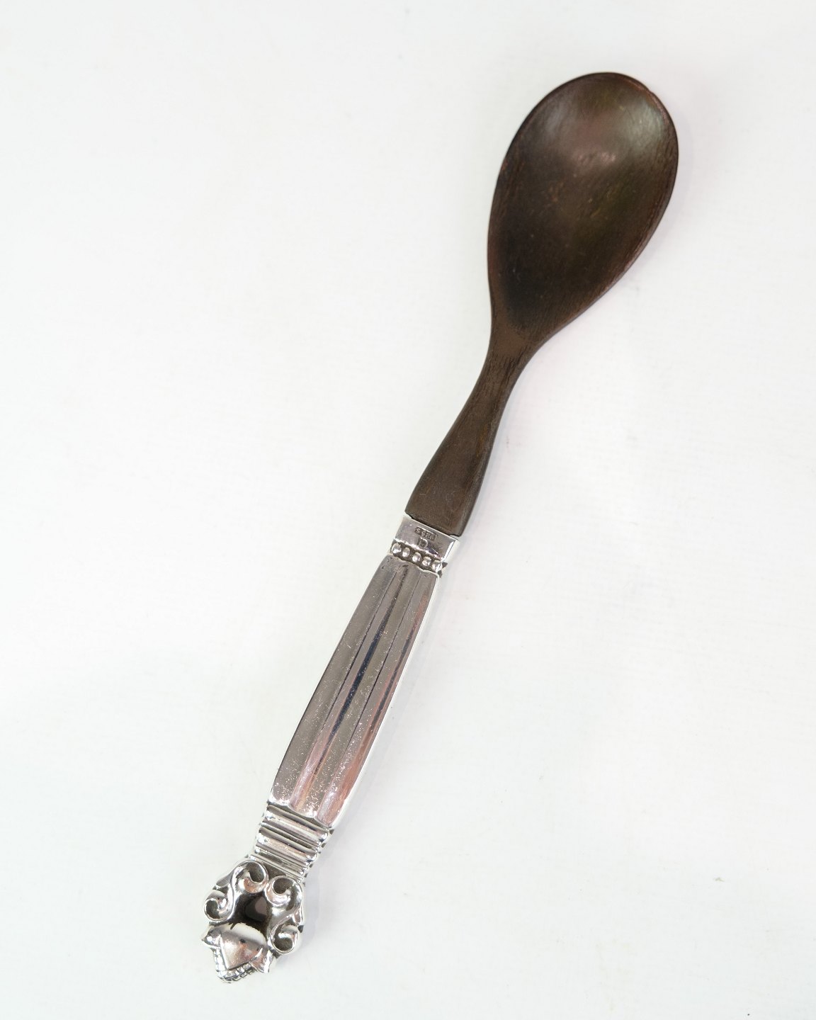 Georg Jensen Salad set in King pattern. Sterling silver and horn. Design by Johan Rohde. Length 18cm.