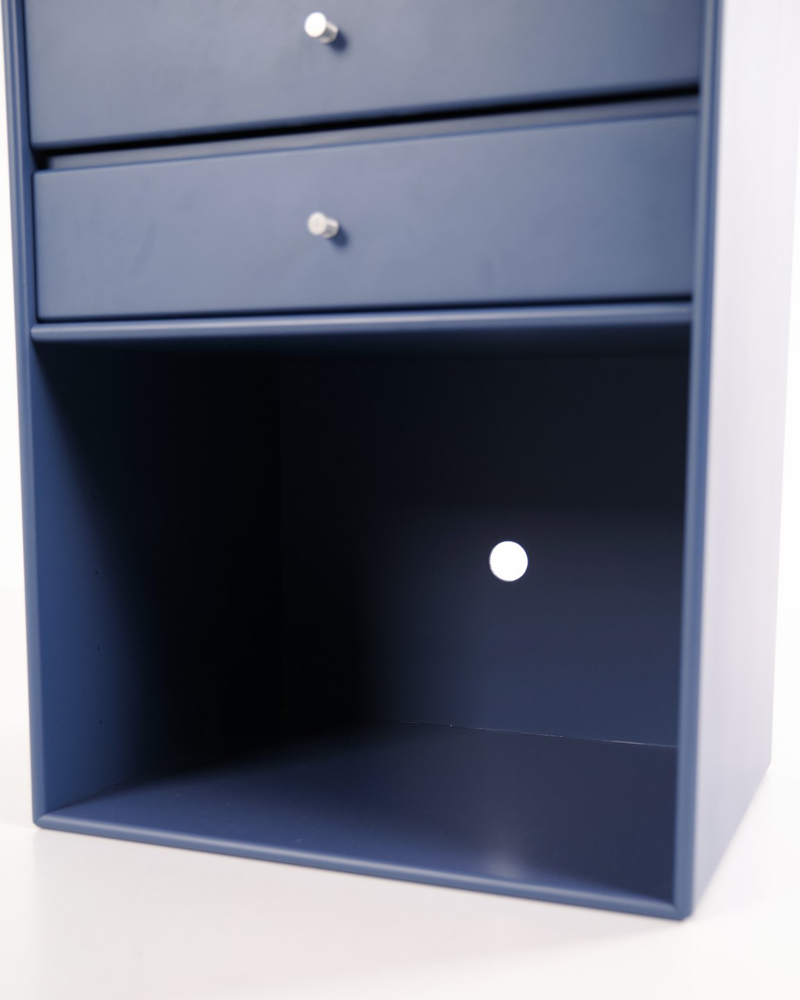 Montana bookcase in blue. Furnished with three drawers and one open shelf, suitable for both storage and display. A classic Montana module that combines functionality and simple design.