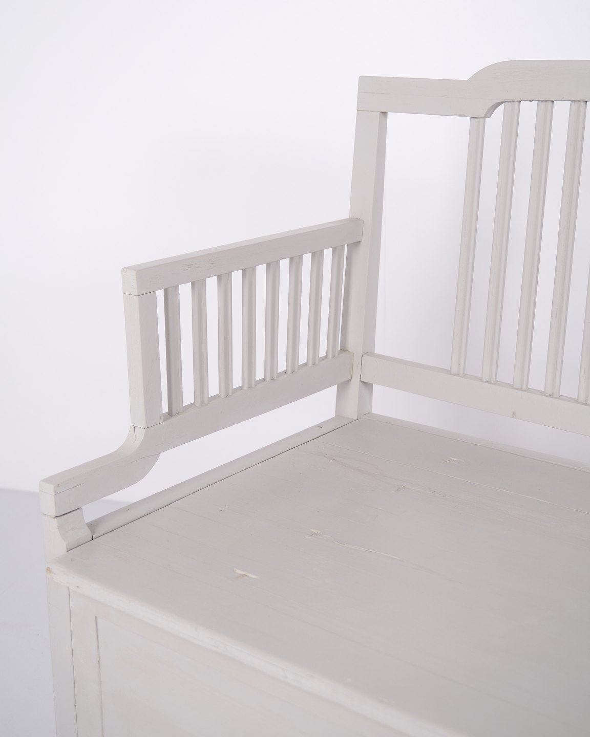 Antik Slagbænk Med Høj Ryg - Gråmalet - Fyrretræ - Opbevaring - År 1860erne