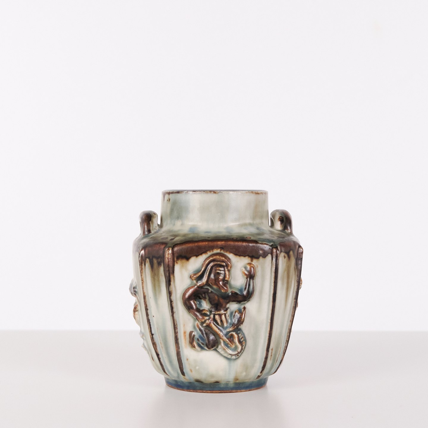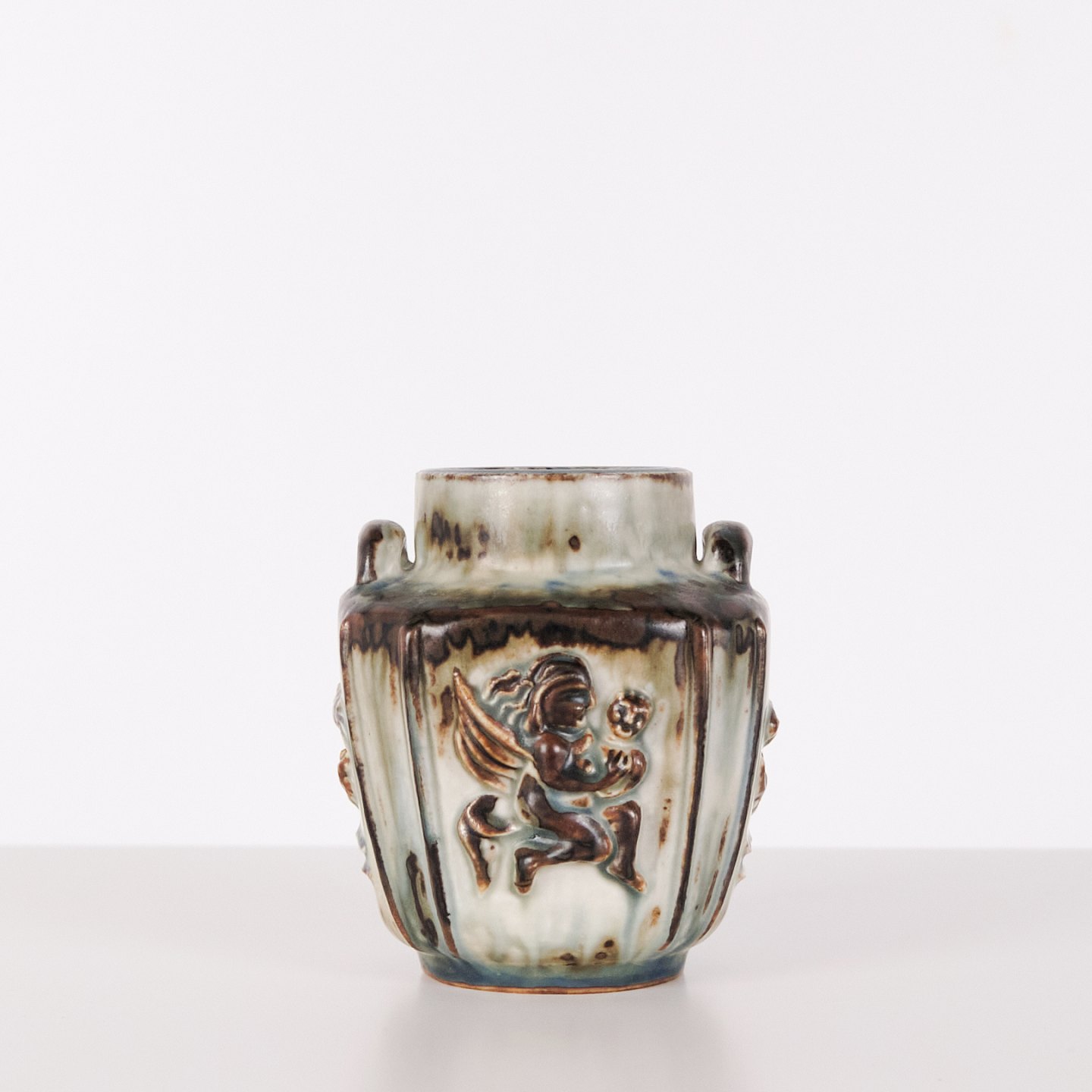 Stentøjsvase designet af Bode Willumsen for Royal Copenhagen. Vasen er modelleret i stentøj med reliefdekoration og produceret hos Royal Copenhagen i perioden 1969–1973. Modellen er kendt for sin plastiske overfladebehandling og tydelige håndværksmæssige udformning. Stemplet og signeret med monogram samt modelnummer 20121.