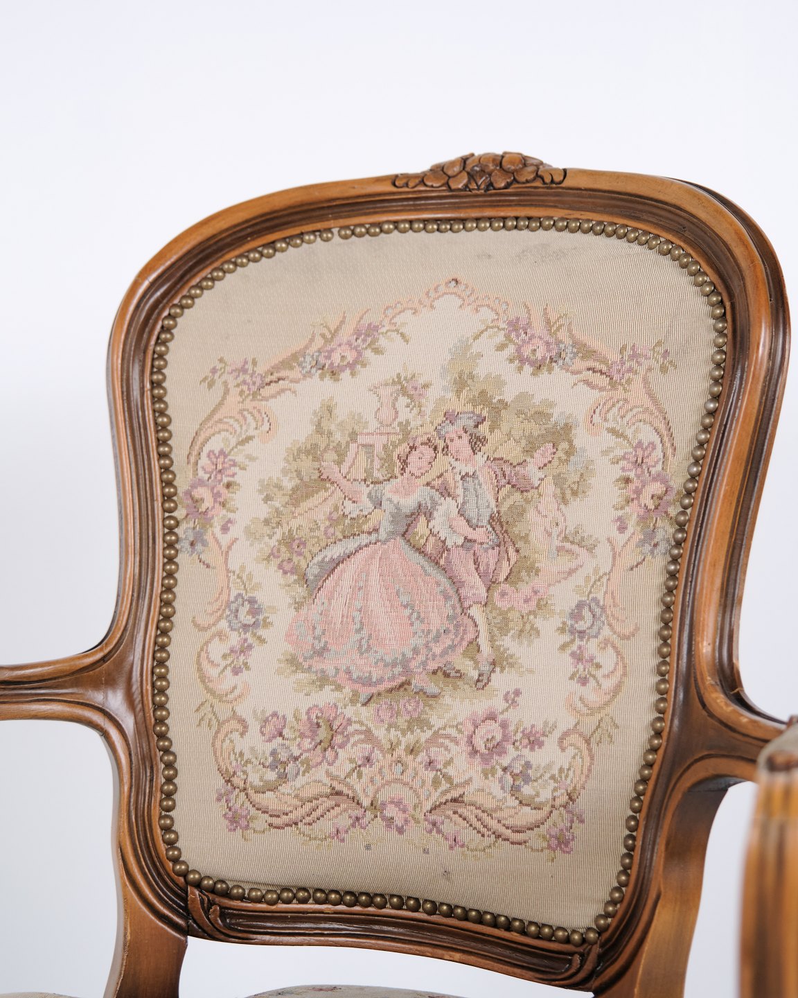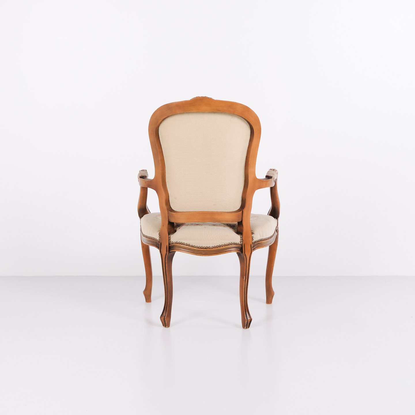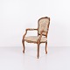 Neo-Rococo armchair from the 1930s with curved legs and patterned floral fabric. Classic and decorative piece of furniture in an elegant style.