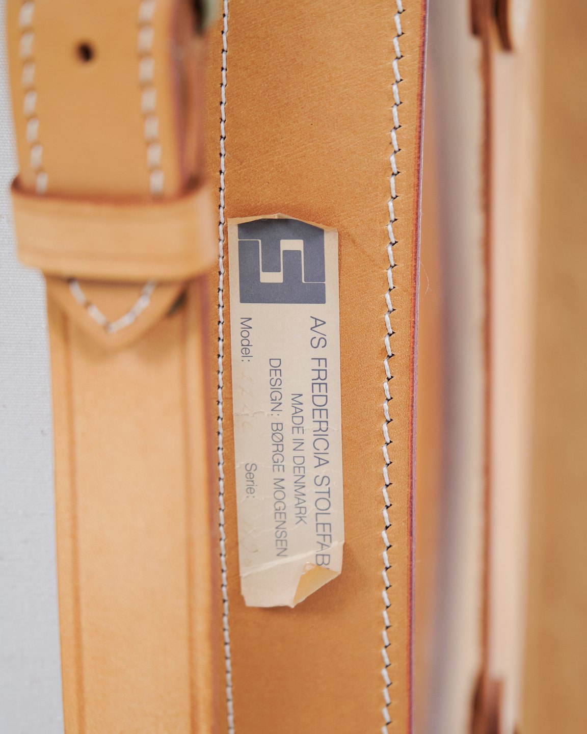 — Materiale: Træramme og naturligt patineret kernelæder