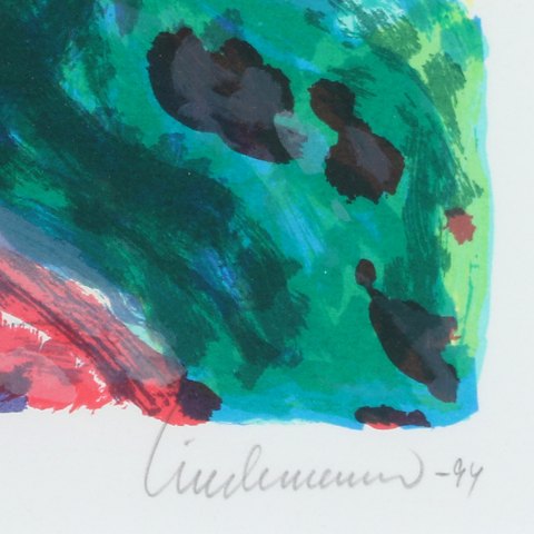 Kai Lindemann (f. 1931 d. 2007) litografi i farver signeret med blyant Lindemann 1994 nr. 203/250 rammemål højde 72 cm, bredde 56,5 cm |