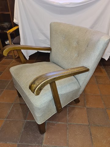 Dansk møbelsnedker overpolstret lænestol i uldstof m. stel af bejdset bøg.