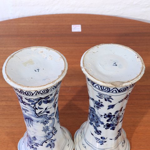2 hollanske vaser i glaseret porcelæn, OBS div. afslag på kanterne