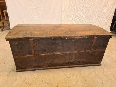 Den har brugsspor, bunden er af fyrretræ og den har defekter.