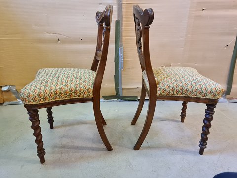 2 Salonstole i mahogni med broderet betræk, fra 1890erne.