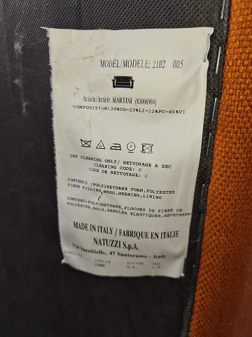 2 personers overpolstret sofa. Italiensk produceret. Fremstår ok velholdt dog med brugsspor på det ene armlæn. (billede)