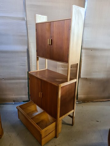 Reolsektion i massivt fyrretræ og fineret teaktræ, fra 1960erne.