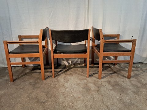 6 Armstole i massivt egetræ med læderbetræk, fra 1970erne.