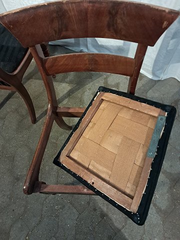 8 Salonstole i massivt bøgetræ og fineret mahogni, fra 1900erne.