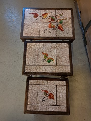 3 Indskudsborde i birketræ med kakler, fra 1930erne.