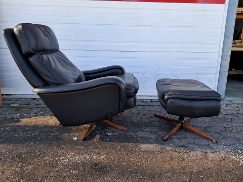 Læder lænestol med fodskammel, fra 1990erne.