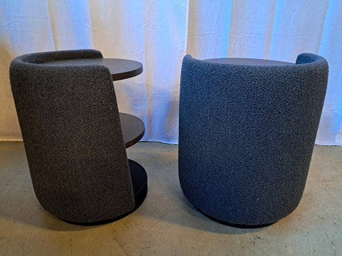 2 Natborde i fineret egetræ, kunstlæder og stof, af nyere dato.