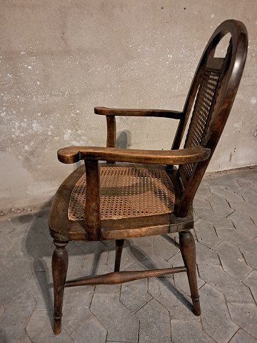 Armstol i massivt egetræ med rørflet, fra 1930erne.