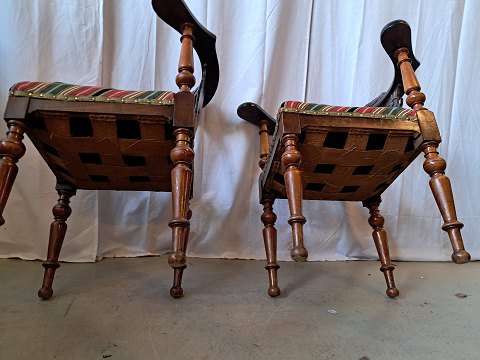 2 Ens hjørnestole i massivt bøgetræ, fra 1910erne.