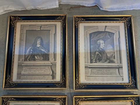 6 Billeder i guldmalet rammer af danske konger, fra 1920erne.