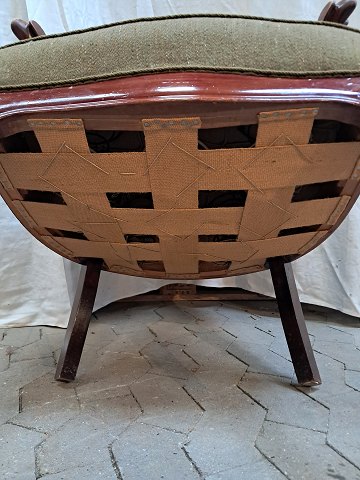 Lænestol i mahogni med uldbetræk, fra 1910erne.