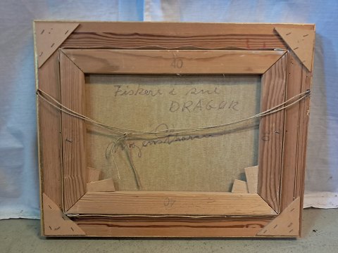 Maleri af Dragør Havn i guldmalet ramme, af : Mogens Amdi Thorsen (1924-2016)