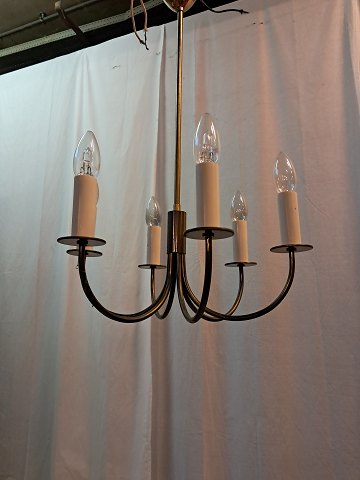 6-armet lysekrone i messing, fra 1960erne.