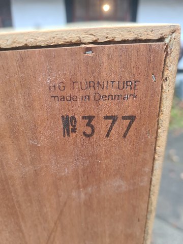 Reol i finéret eg med underskab og hessian beklædt bagbeklædning. Ydført hos HG Funiture i 1970'erne. Fremstår pæn og velholdt uden de store brugsspor dog med hul i bagbeklædningen.(Billede)