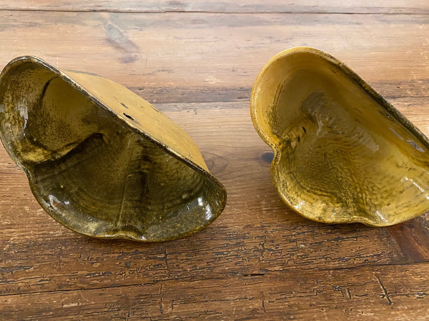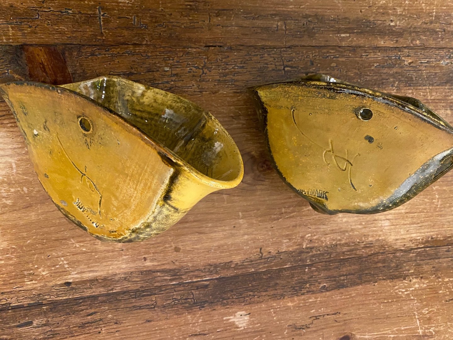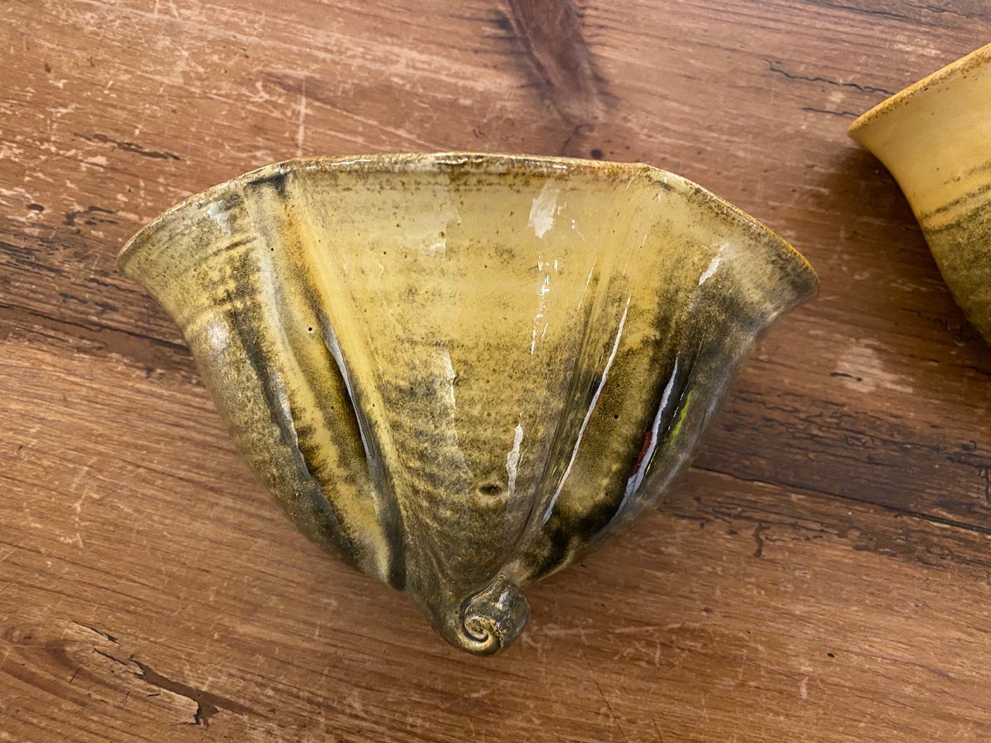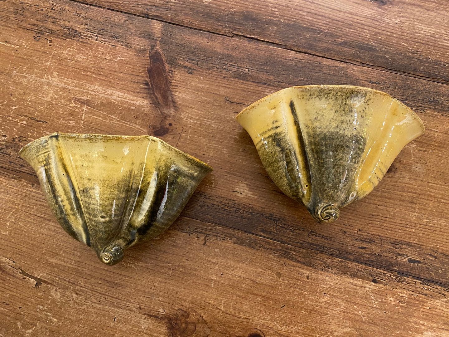Svend Hammershøi for Kahler, pair of uranium yellow ceramic vases to hang on the wall. Very good condition. 1920s / 1930s, Art Deco.