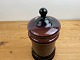 Den lilla glaskrukke er 27 centimeter høj inkl. låget og 14 centimeter bred under foden.