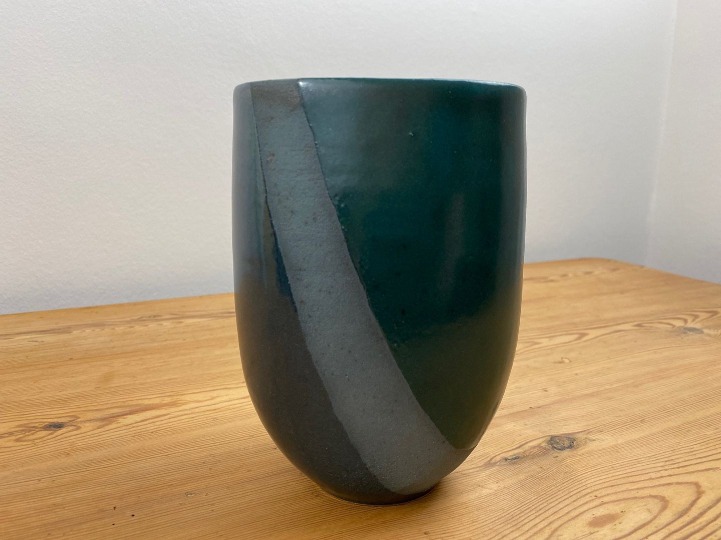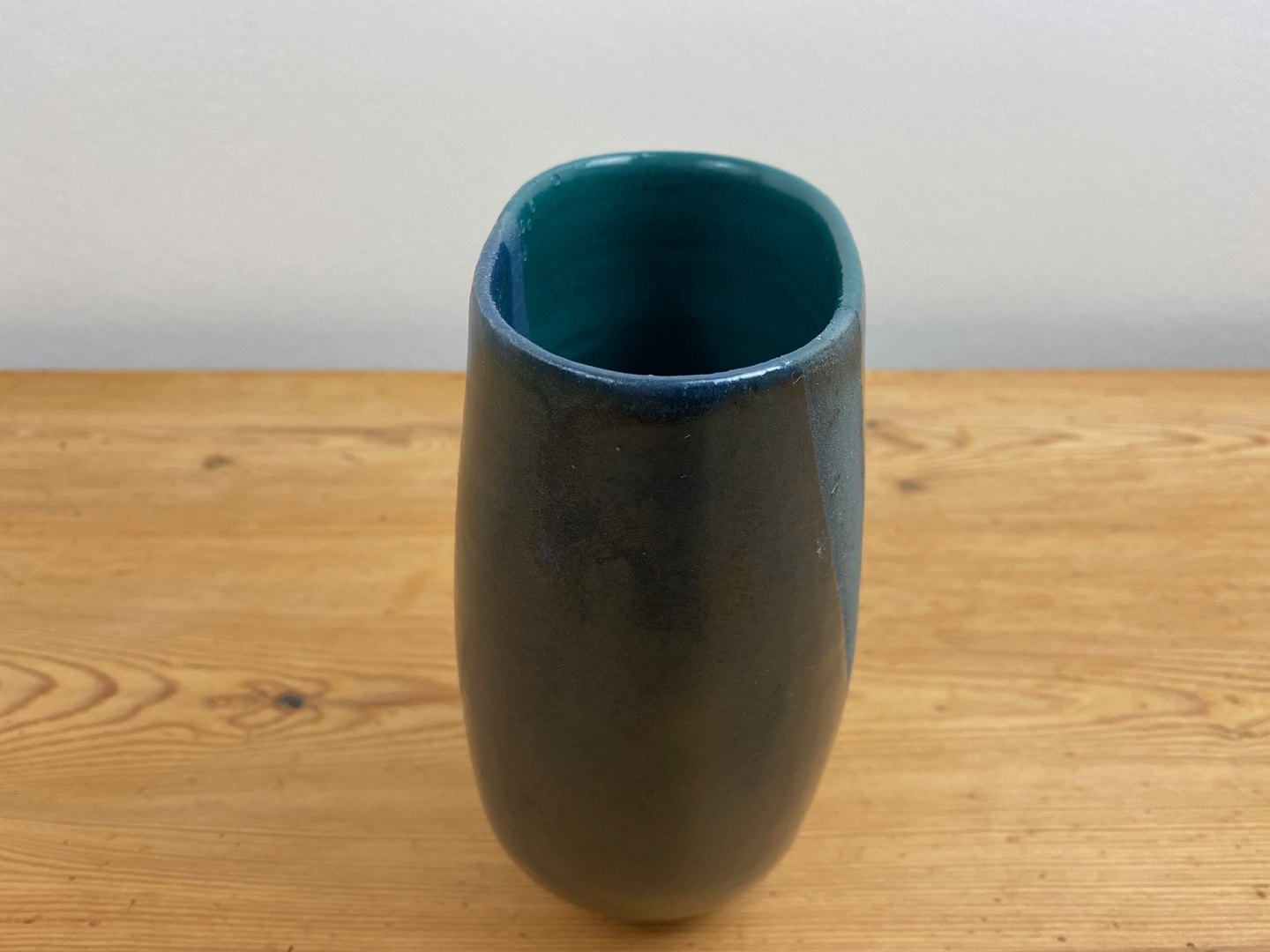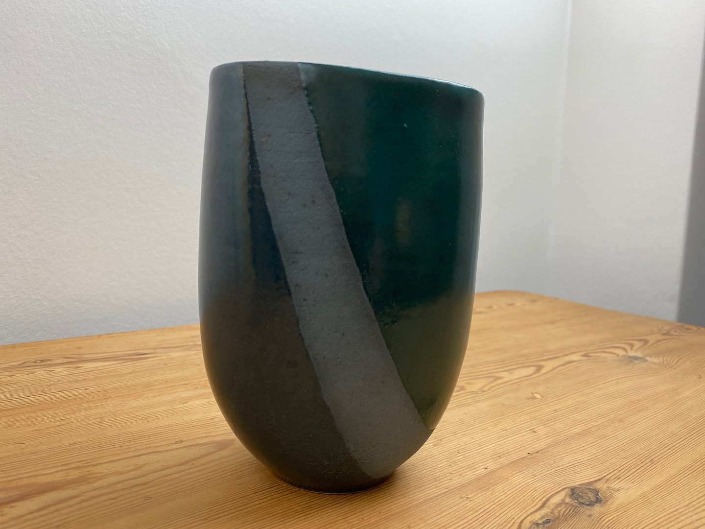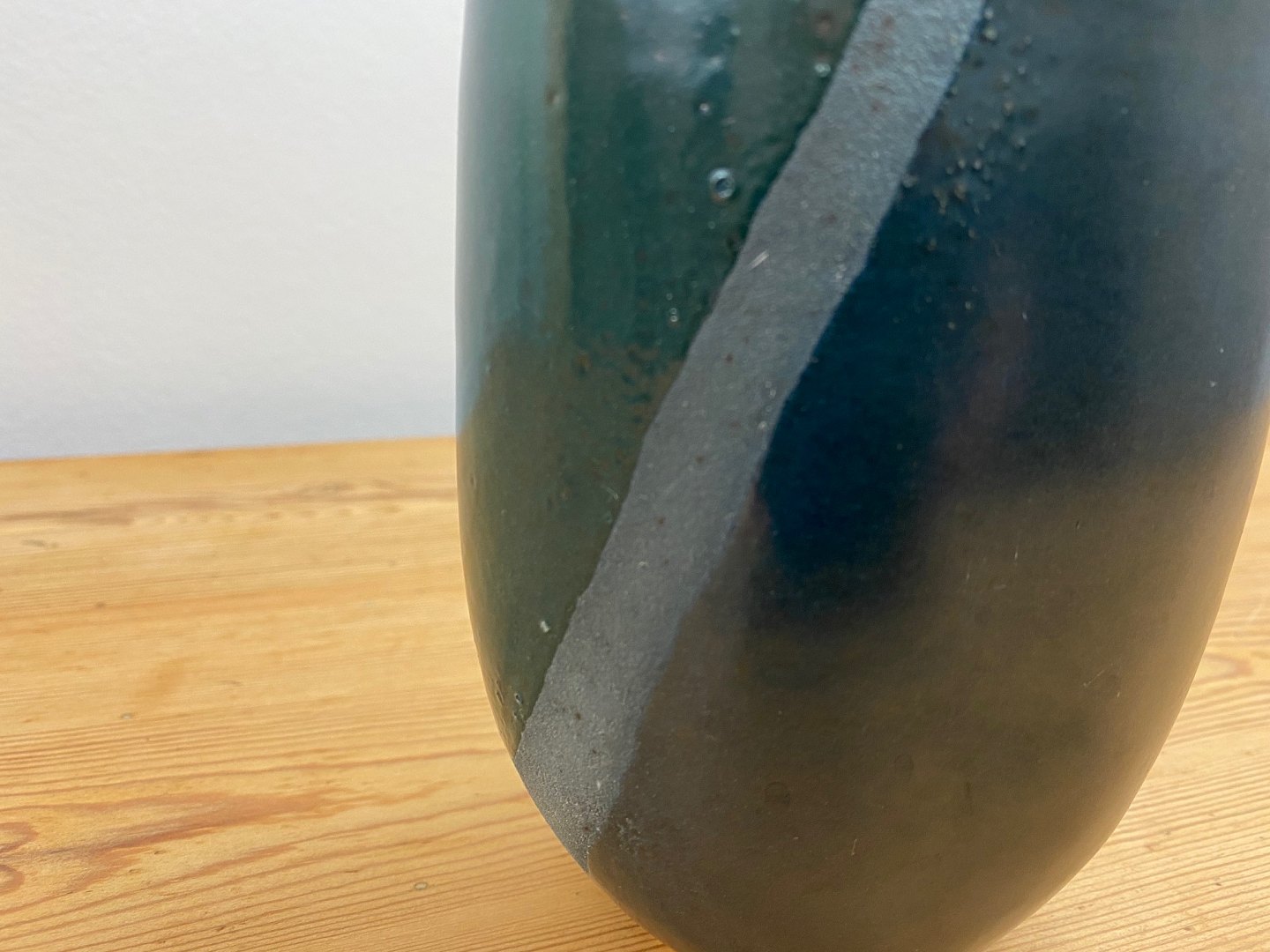 Grüne und blaue Keramikvase von Lasse Birk, 1980er Jahre. 16 cm hoch. Guter Zustand.