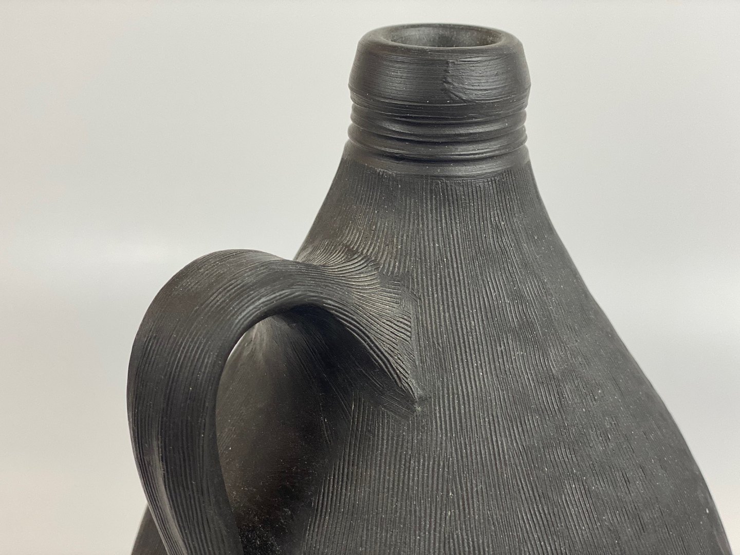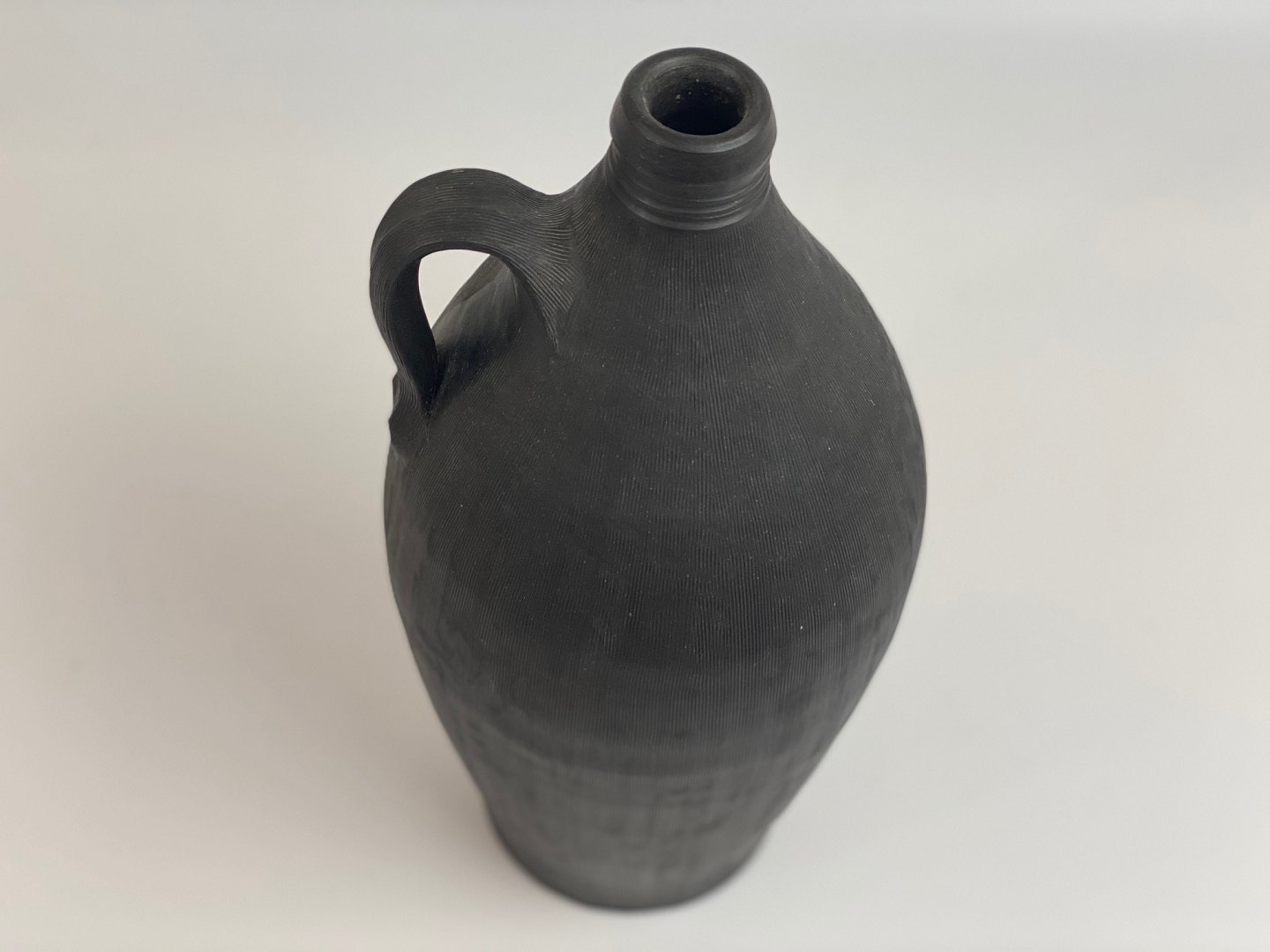 Stor flaske-vase fra Dagnæs Keramik. Midten af det 20. århundrede, mørkebrun med indridset mønster