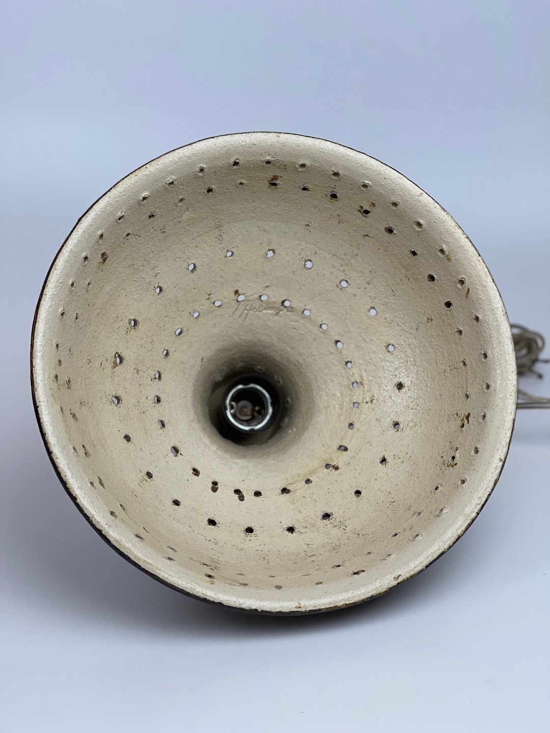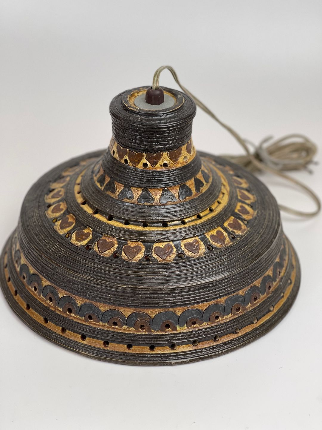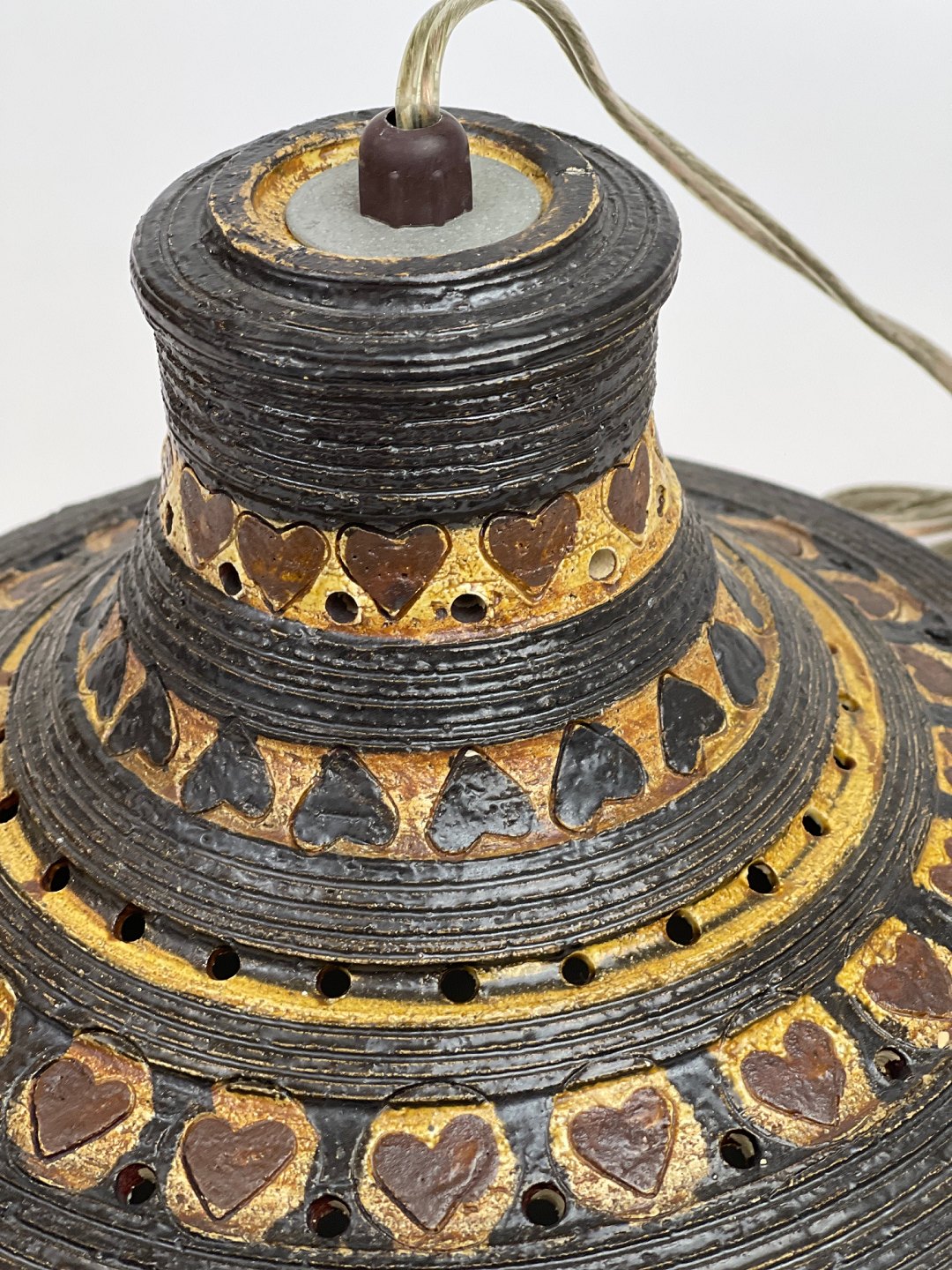 Ceramic pendant / ceiling lamp by Jette Helleroe with heart pattern. 1970s