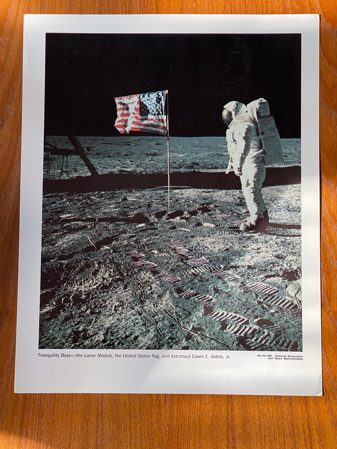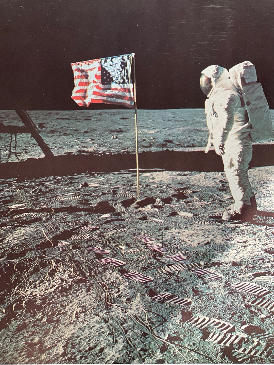 Original NASA color offset photography / photo print from 1969 by Edwin "Buzz" Aldrin during the Apollo-11 lunar mission that put the first humans on the Moon.