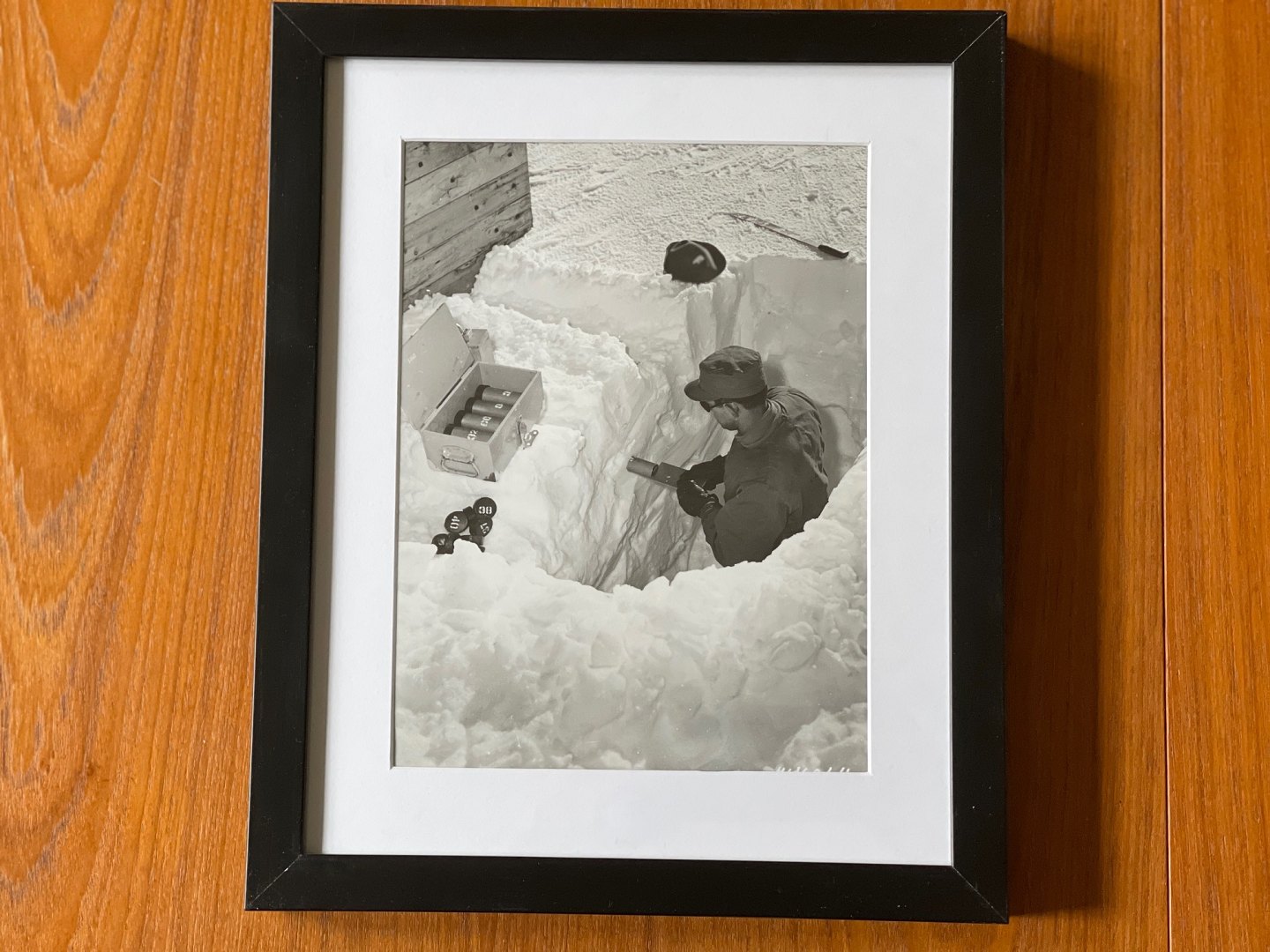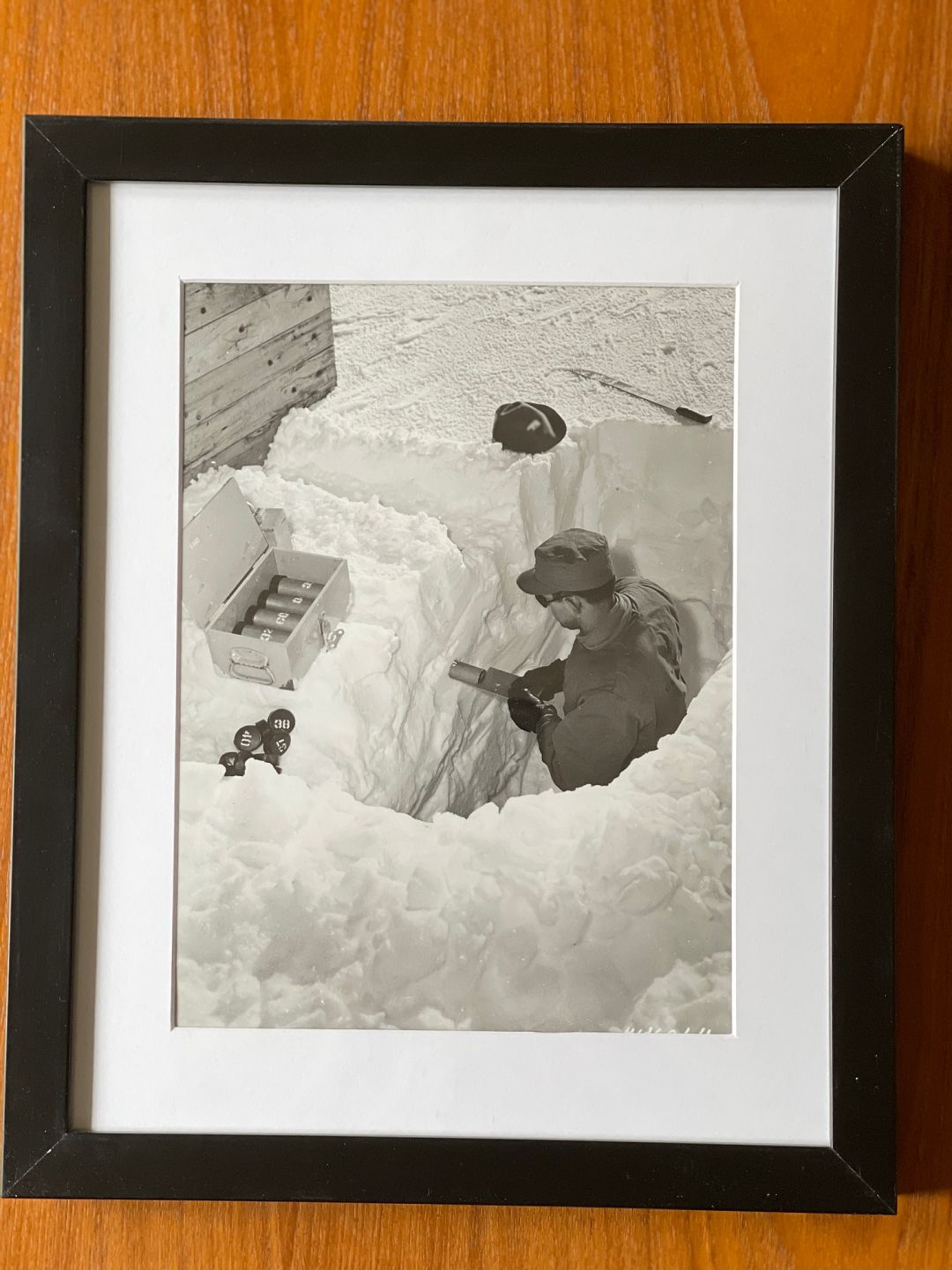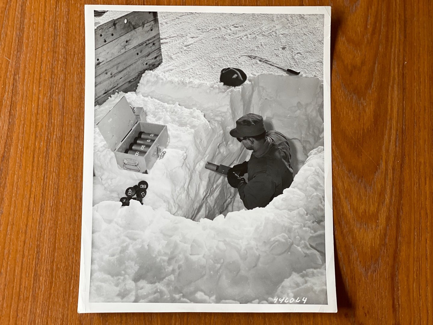 The picture shows an American soldier from the engineering troops, USACE, checking the thickness of the ice in the Greenlandic subsoil. A knowledge that the USA i.a. needed during the construction of passages in the underground city of Camp Century, which was built a few years later north of Thule Air Base / Pituffik, as well as during project Iceworm, which was about constructing a network of railway tunnels under the ice sheet that would house more than 600 nuclear missiles .