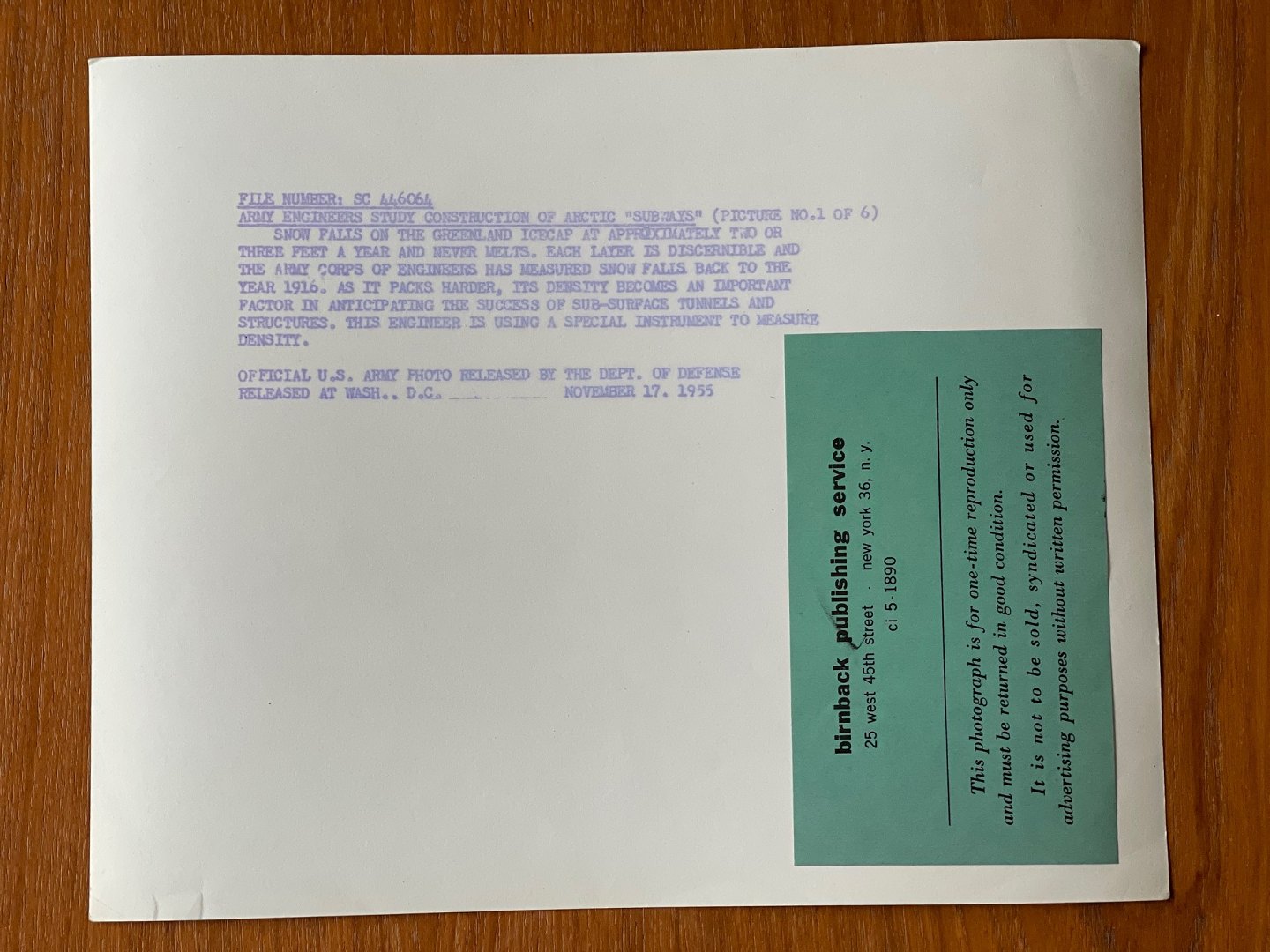 The image bears a sticker from Birnback Publishing Service.
