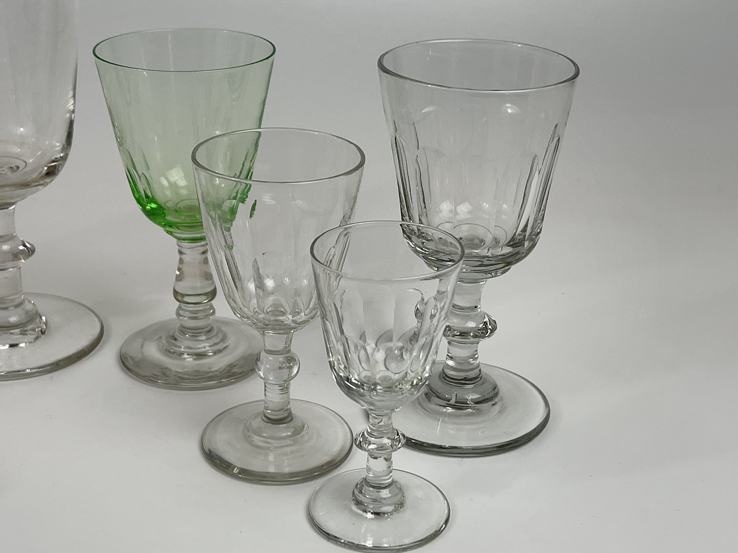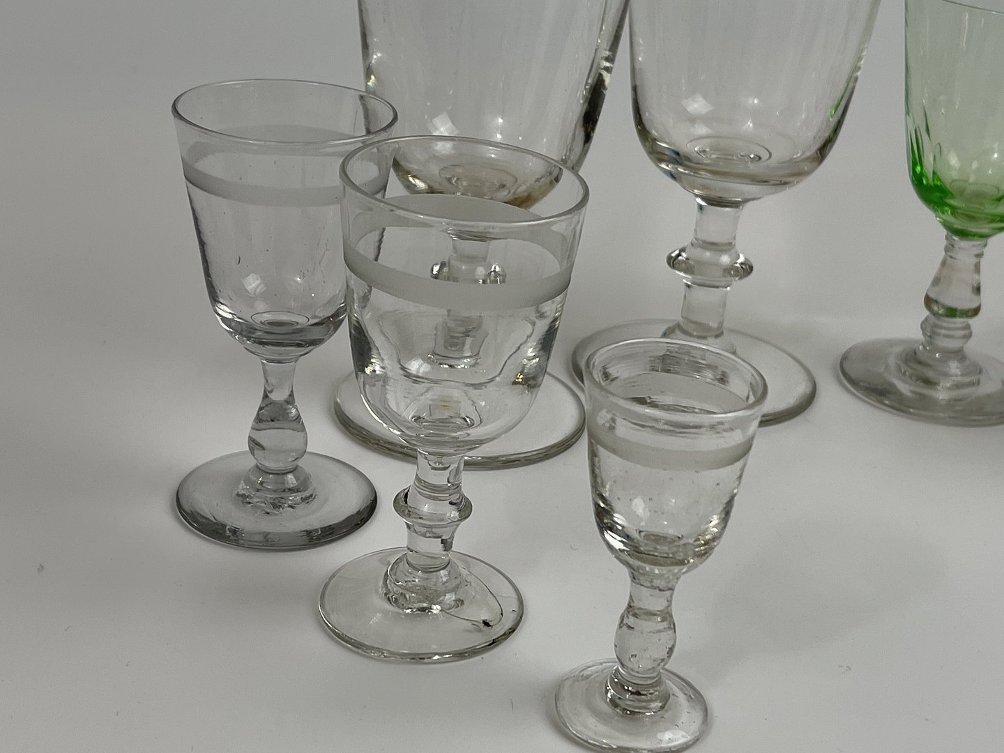 1 stk. Chr. VIII stort hedvinsglas / lille hvidvinsglas med slibninger og kugle på stammen, cirka 10,90 cm højt. DKK 300,00.