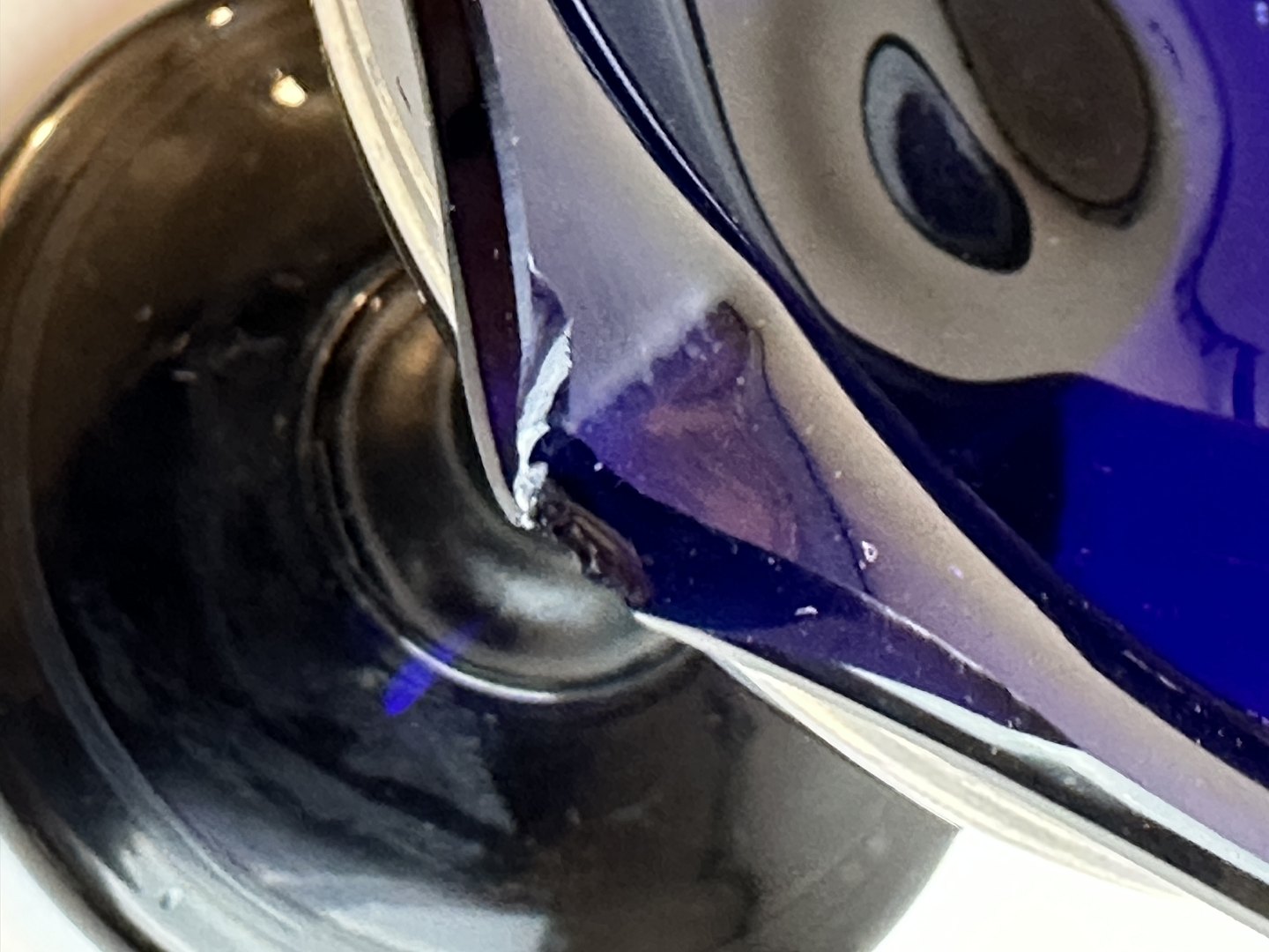 Afslag på en spids - se foto samt mindre nøk langs kant.