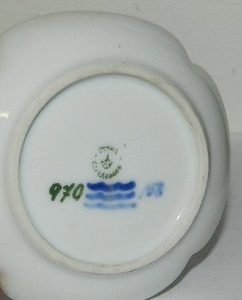 Askebæger i porcelæn fra Royal Copenhagen. 2. sortering. Dekoreret med viber. Fremstillet mellem 1900 - 1923. I god stand. 2 cm højt og 9 cm i diameter.