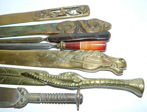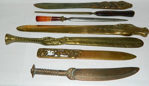 Collection letter openers. The shortest is 17 cm (6,75") long and the longest is 25½ cm (10") long. All produced between 1900-1950.