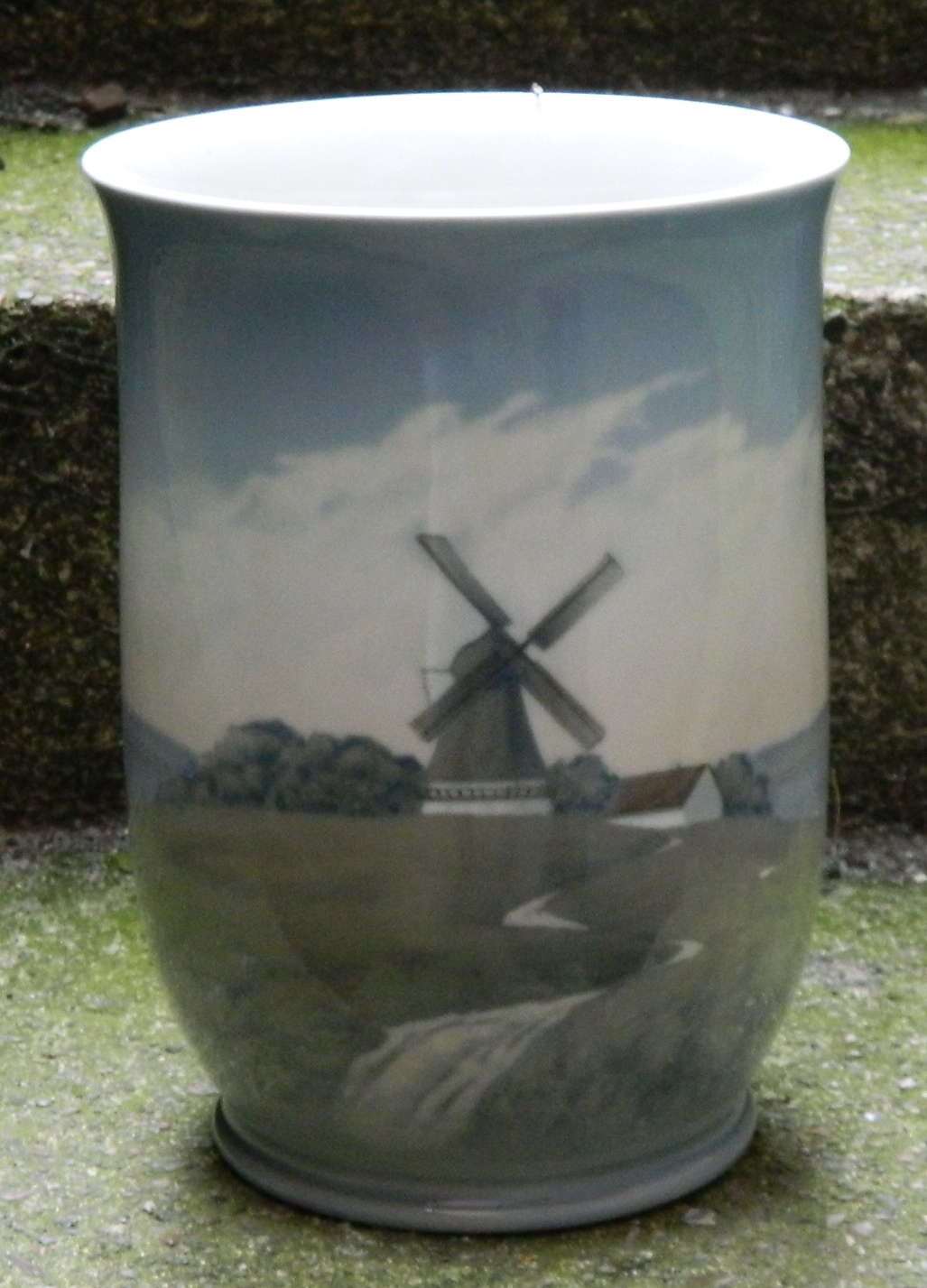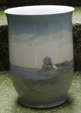 B&G vase i porcelæn med landskabsmotiv med bl.a. mølle