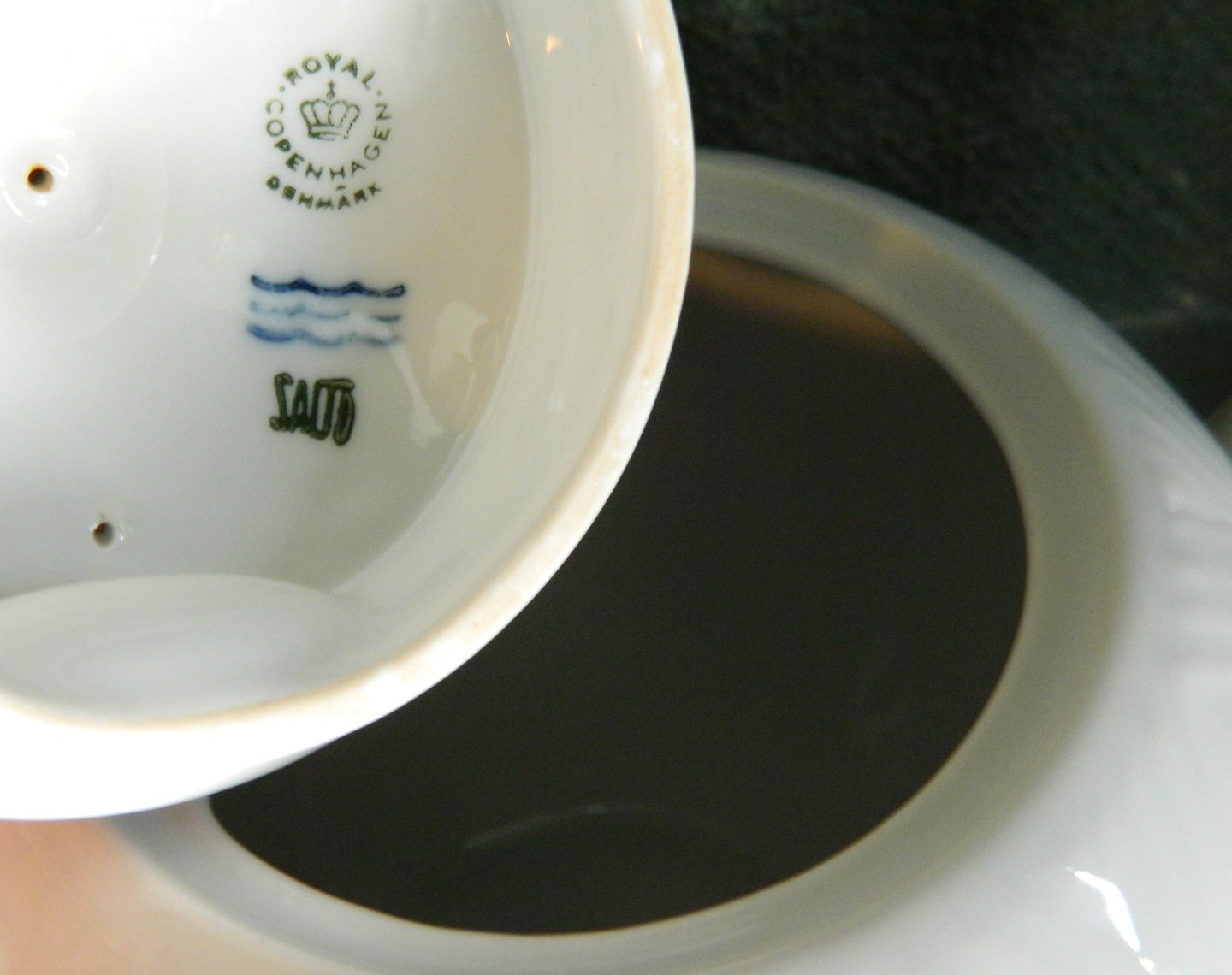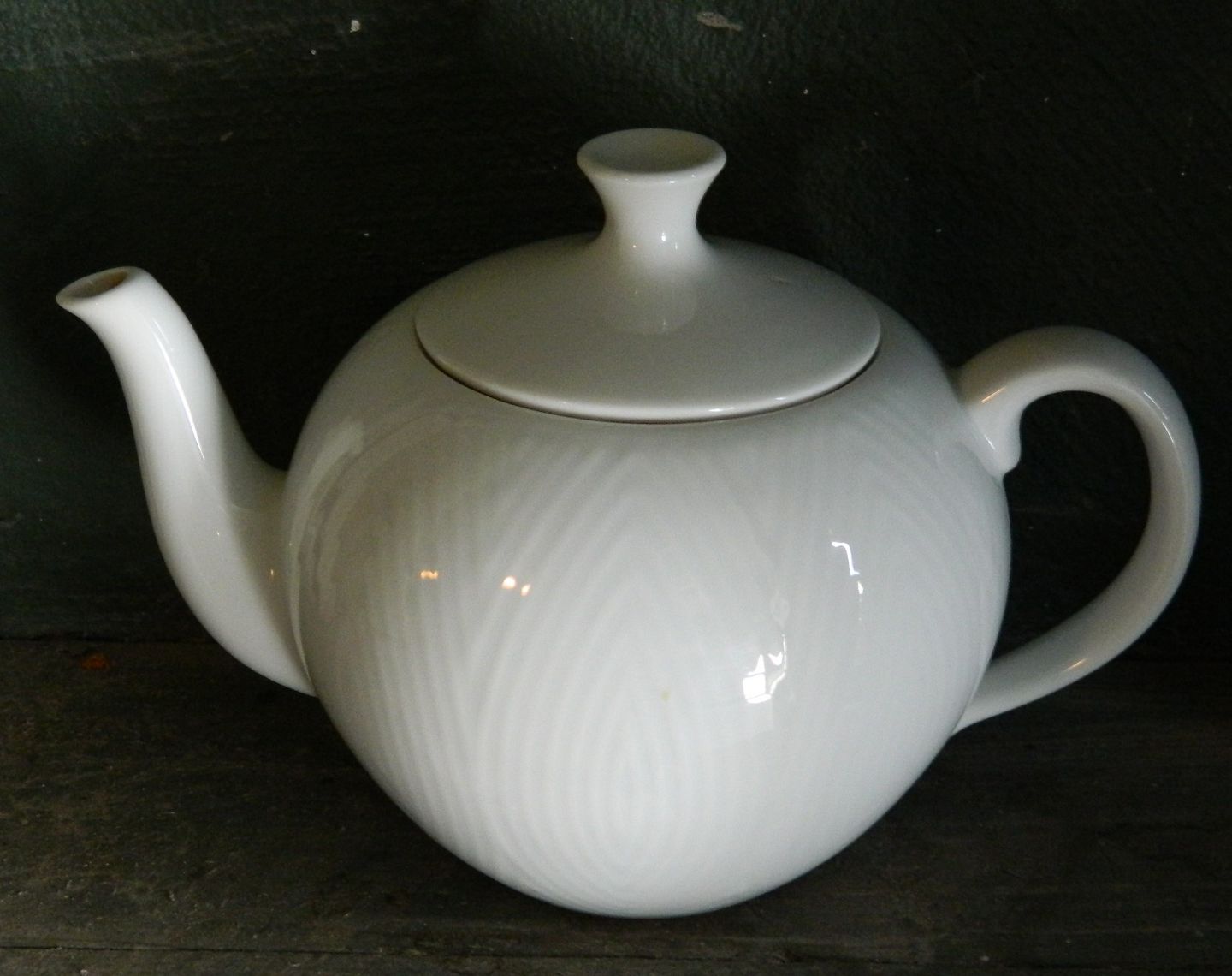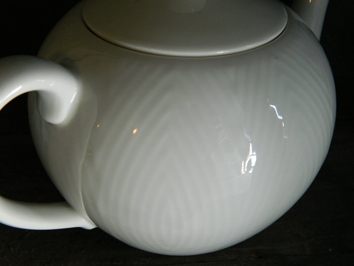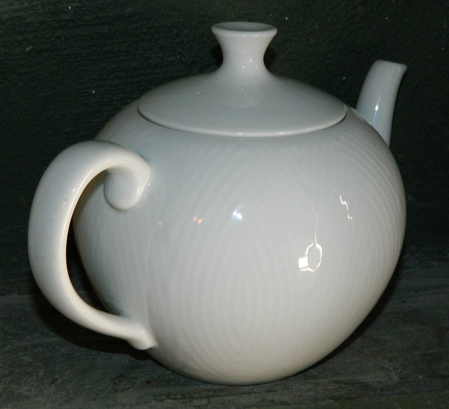 White porcelain teapot from Royal Copenhagen with herringbone pattern in relief designed by Axel Salto. In perfect condition. Both parts are marked on the underside. Dimensions: H. 16½ cm L. 24 cm.