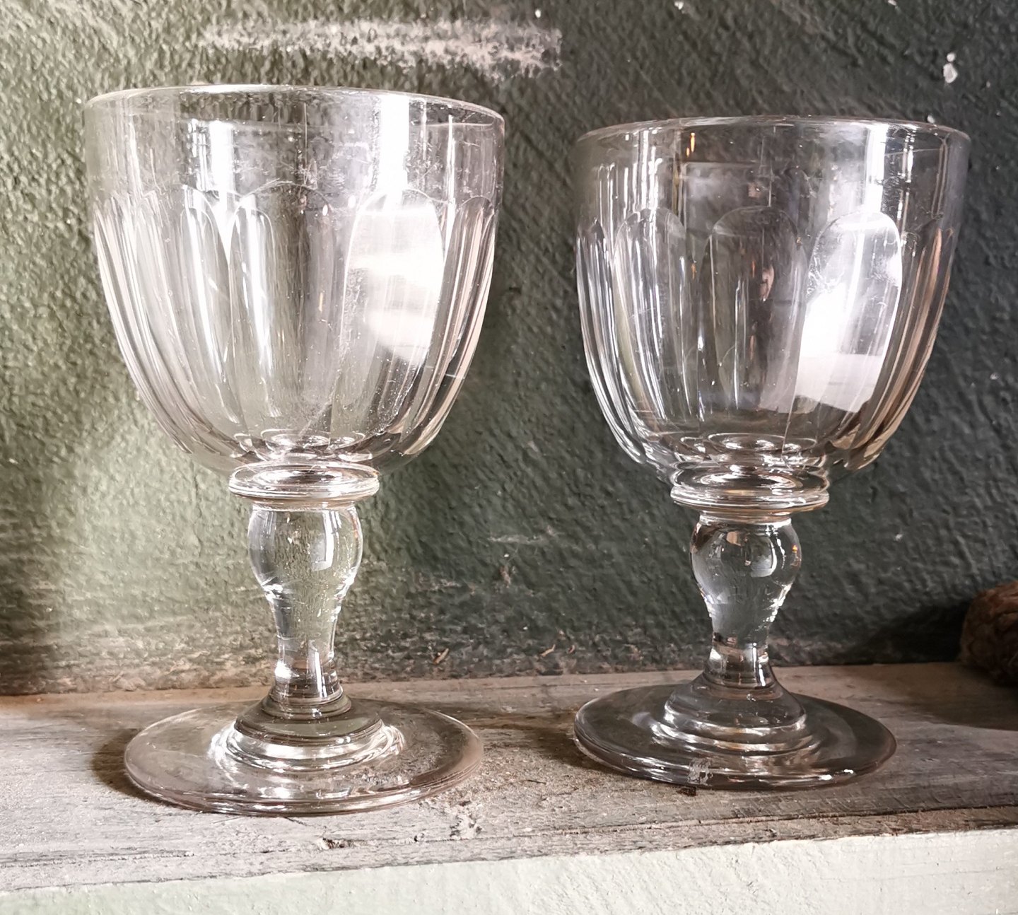 Par gamle vinglas med facetslebet kumme. Fremstår begge i god stand. H. 14½ cm. Begge fremstår i god stand uden skader eller reparationer.