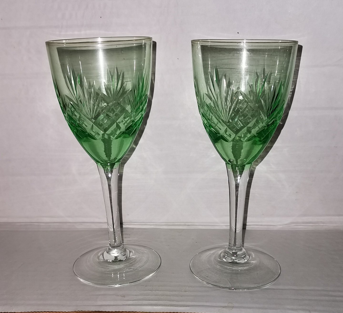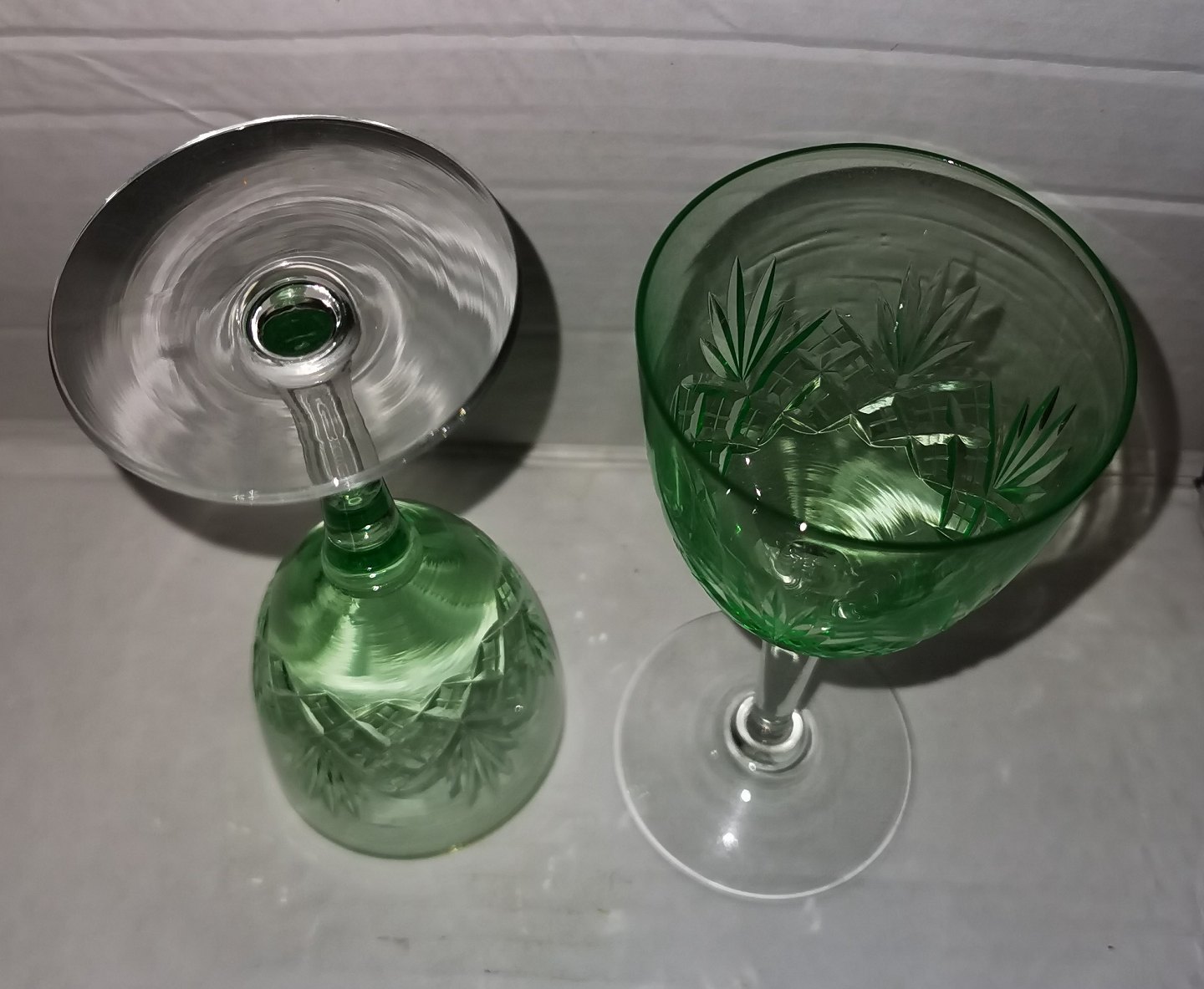 "Else" fra Kastrup Glasværk. Vinglas med slibninger på grøn kumme. I god stand. H. 15 cm.