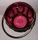 Sukkerskål i lyserødt glas, der sidder i metalholder med hank. Fremstillet omkring 1900. Naturlig overflade brugsspor på metallet. Glasskålen er i perfekt stand. Mål: 9 cm (3.54 inches) høj og åbningsdiameter på 10½ cm (4.13 inches).