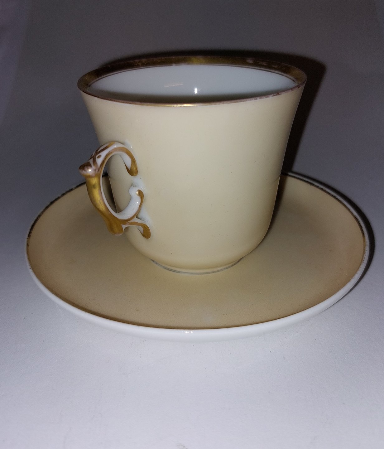 Portrait of a Danish officer on a porcelain cup from Bing & Grondahl, Denmark. Made around 1900. Both cup and saucer stamped in blue with B&G. In good condition without damage or repairs. The cup is 7 cm high (2.75 inches).