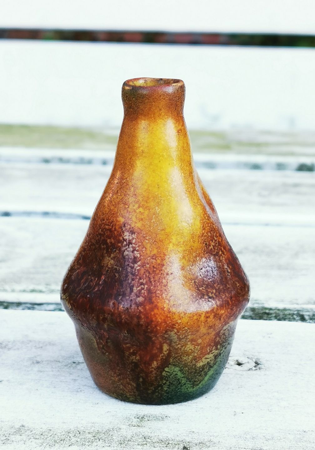 Miniature vase in ceramics from Peter Ipsen's Enke. Designed and glazed in veneer style. Appears in good condition with no damage or repairs. Few well-known factory marks on the bottom. H. 9.5 cm