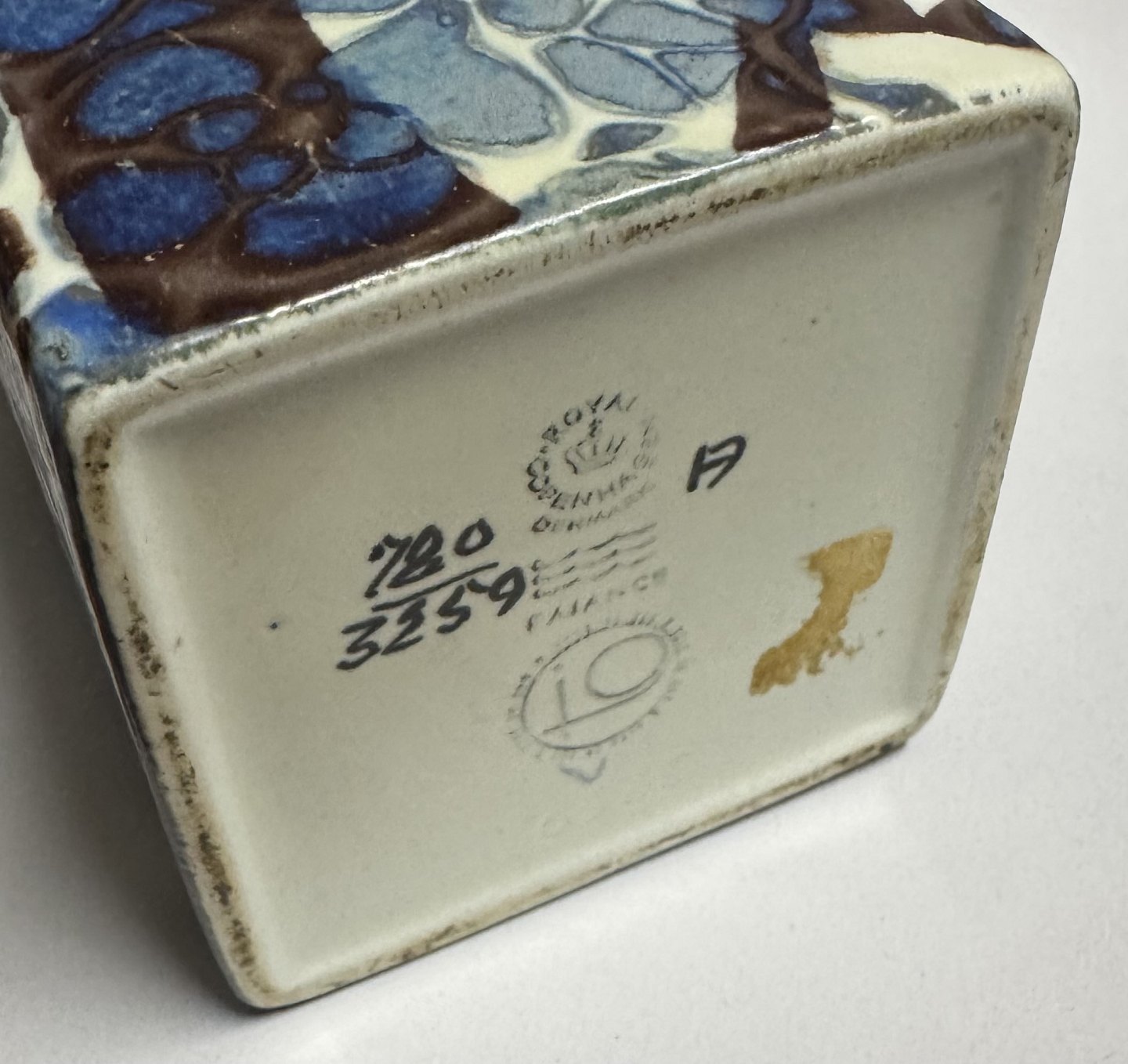 Johanne Gerber: Four-sided vase in faiance from the Aluminia factory with model number 3259. In excellent condition. First quality production. H. 22,2 cm