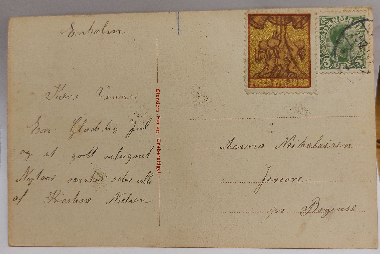 Julepostkort: Tegnet af Fritz Kraul. Annulleret I 1917. Julemærke Fred Paa Jord. I god stand