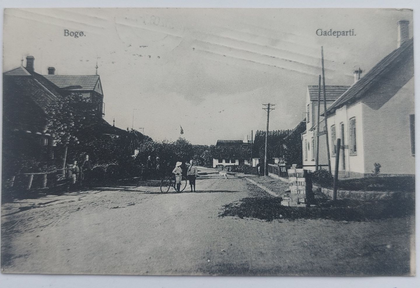 Postkort: Gadeparti fra Bogø i 1912. I god stand.
