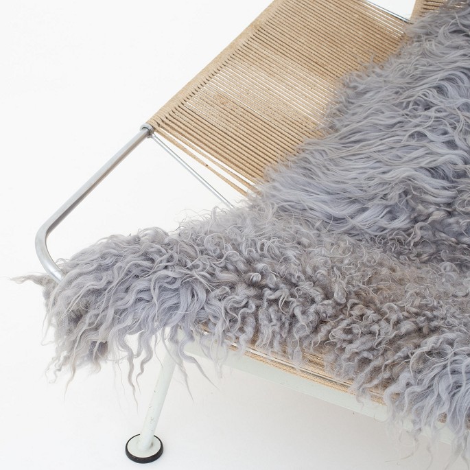 GE 225 - 'Flagline chair' with white base and original flagline and neck cushion. This is a model photo. The appearance of the cushion, lambskin and patina may vary. Please contact us for exact images of this product.