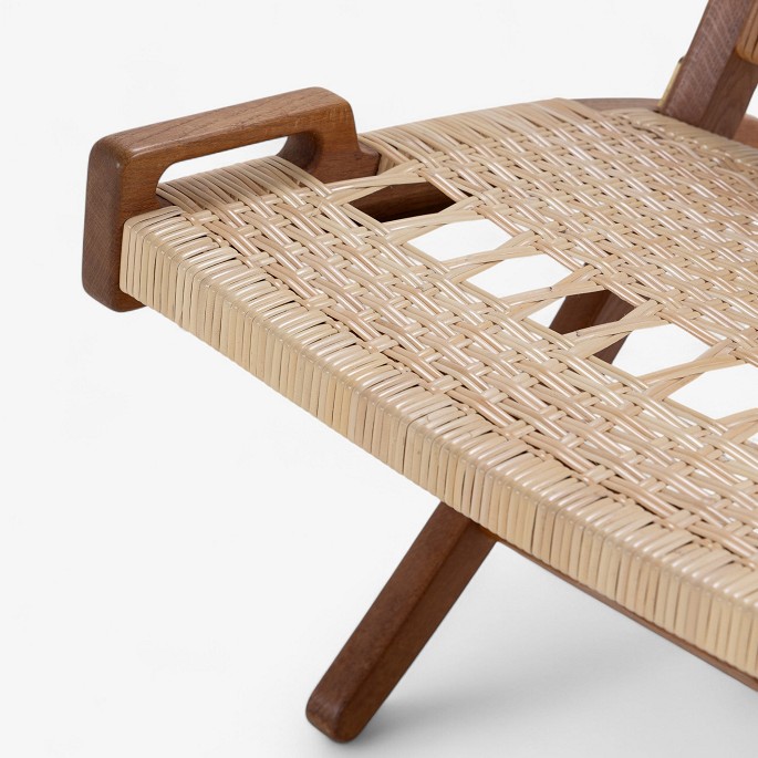 JH 512 - 'Fireplace' folding chair in patinated oak with seat and back in partly original wicker. Original hook for wall hanging included. Designed in 1949.